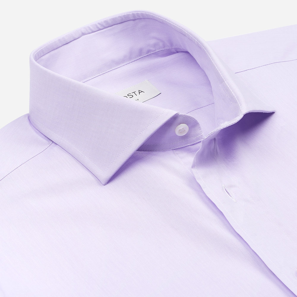 Shirt solid violet cotton zephyr, collar style updated spread collar with short points