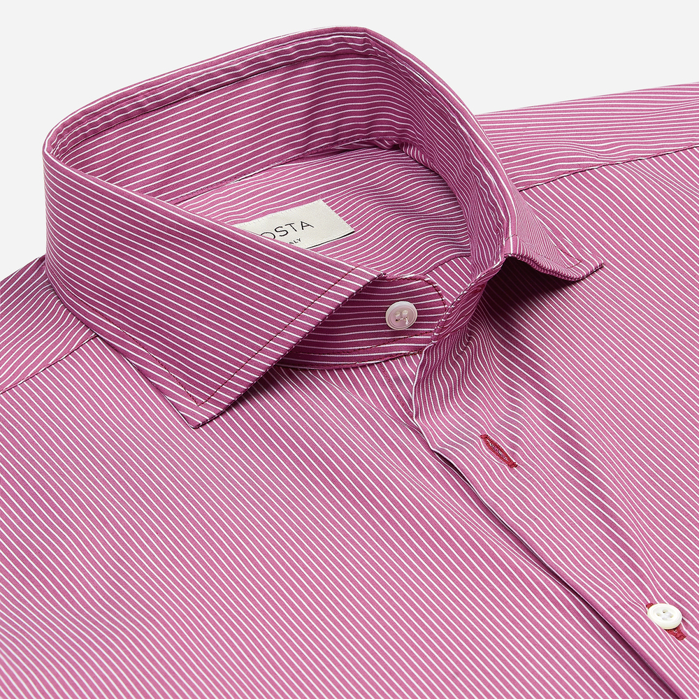 Shirt striped violet stretch poplin, collar style cutaway collar