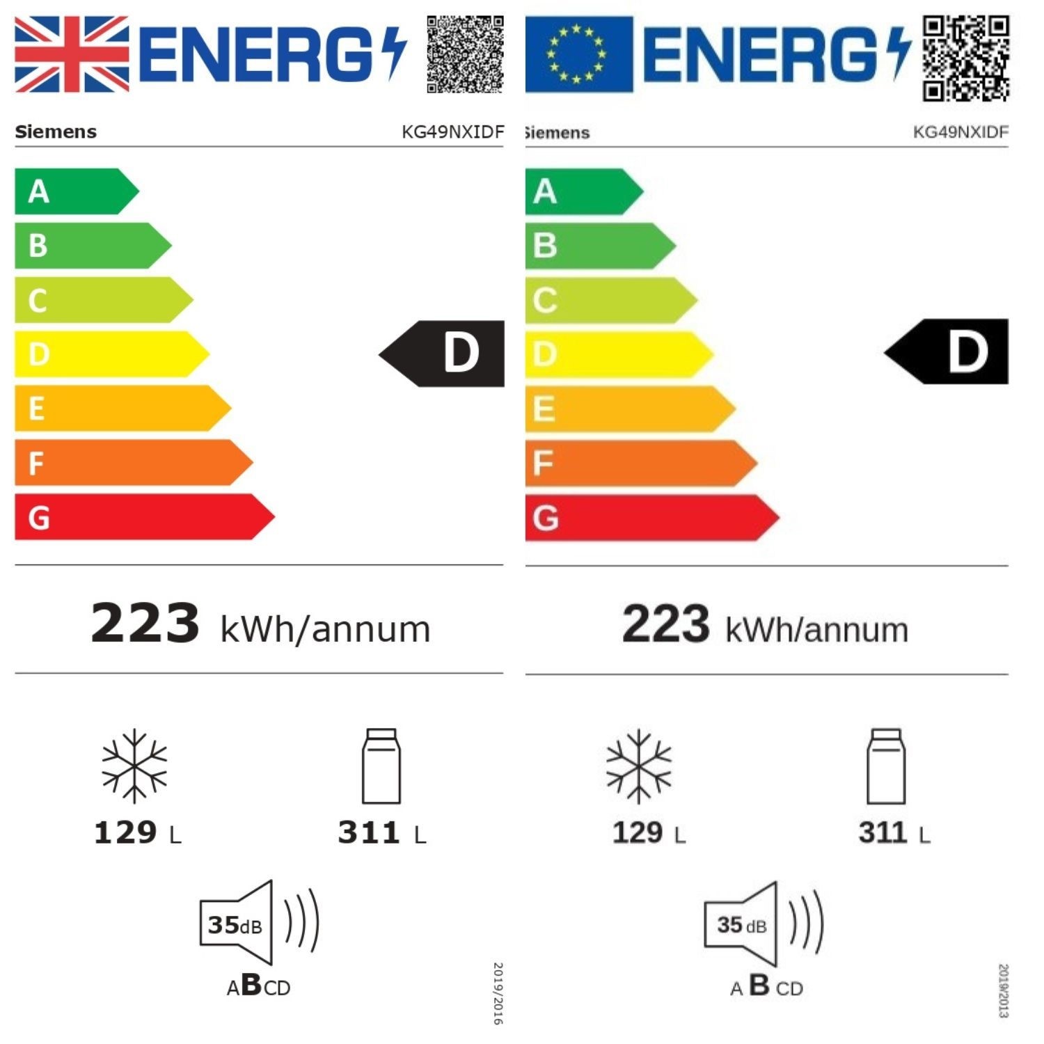 . Elevate your kitchen storage with the Siemens KG49NXIDF Combi Cabinet. Featuring a hyperFresh drawer for prolonged freshness of fruits and vegetables and a noFrost freezer for hassle-free defrosting. The 0°C zone provides ideal storage for diverse items while the multiAirflow system ensures uniform cooling. With a sleek high-gloss back wall and a convenient bottle rack this combi cabinet combines functionality and style seamlessly. Key Features . Total capacity of 440L with 311L for the fridge and 129L for the freezer.Dimensions of 2030mm x 700mm x 667mm (HxWxD).Energy Efficiency rated D consuming 223 kWh/year.Operates quietly at 35 dB(A) minimizing noise disturbance.noFrost feature prevents ice buildup in the freezer.MultiAirflow technology ensures even cooling throughout.hyperFresh (;0°C); compartment prolongs freshness of meat and fish.freshSense technology maintains stable temperatures for optimal food preservationStainless Steel Anti-fingerprint DoorsThese doors are finished with a special coating that resists the appearance of fingerprints and smudges. This technology ensures that the door retains its sleek and clean appearance without the need for constant cleaning. The coating also adds a layer of protection against minor scratches and dents enhancing the durability and lifespan of the refrigerator. LED Electronic ControlThe LED electronic control panel provides a user-friendly interface for adjusting and monitoring the temperature settings of both the refrigerator and freezer compartments. This feature allows for precise control over the cooling environment ensuring that your food is stored under optimal conditions. The LED display is easy to read and operate making it convenient to adjust settings as needed. Separate Cooling CircuitsEquipped with two independent cooling systems this feature ensures that air does not mix between the fridge and freezer compartments. This separation prevents the transfer of odours and tastes from one section to another maintaining the freshness and flavour of your food. Additionally it allows for more accurate and efficient temperature management in each compartment reducing energy consumption. Open Door and Temperature Increase AlarmThis safety feature alerts you with visual and acoustic signals if the door has been left open or if there's an unexpected increase in temperature within the fridge or freezer. This helps prevent food spoilage and energy waste by reminding you to close the door properly and check for potential issues that may be causing the temperature rise. Reversible DoorThe reversible door feature offers flexibility in the refrigerator's placement and installation. It allows you to choose the direction in which the door opens making it easier to integrate the appliance into any kitchen layout. This is particularly useful in tight spaces or when you need to change the arrangement of your kitchen appliances. hyperFresh Humidity-Controlled DrawerThis specialized drawer is designed to keep fruits and vegetables fresh for longer periods by allowing you to adjust the humidity levels inside it. By creating the ideal storage environment for different types of produce it helps maintain their freshness texture and nutritional value. This drawer is a practical solution for reducing food waste and ensuring that you always have fresh ingredients on hand. Super Cooling FunctionThe super cooling function rapidly lowers the temperature of the fridge compartment to cool down groceries quickly after shopping trips. This helps to lock in the freshness of new items preserving their taste and extending their shelf life. It's especially useful for cooling large quantities of food or beverages efficiently ensuring they reach the ideal storage temperature faster. LED IlluminationFeaturing energy-efficient LED li