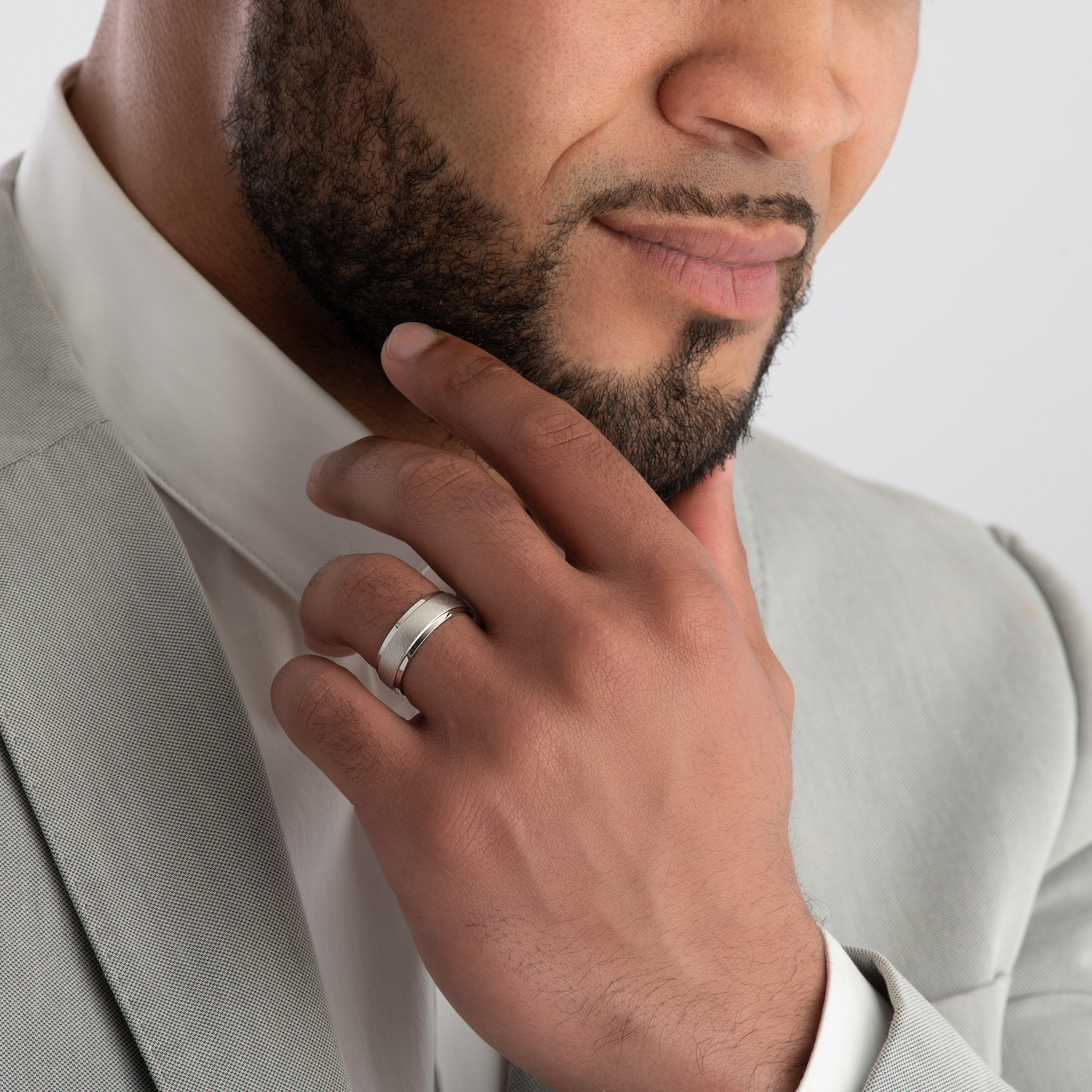 Stylish and with a modern, contemporary edge, this Silver Textured Men's Ring will keep your look up to date. At A Glance Raised central band Crafted in sterling silver Chunky texture
