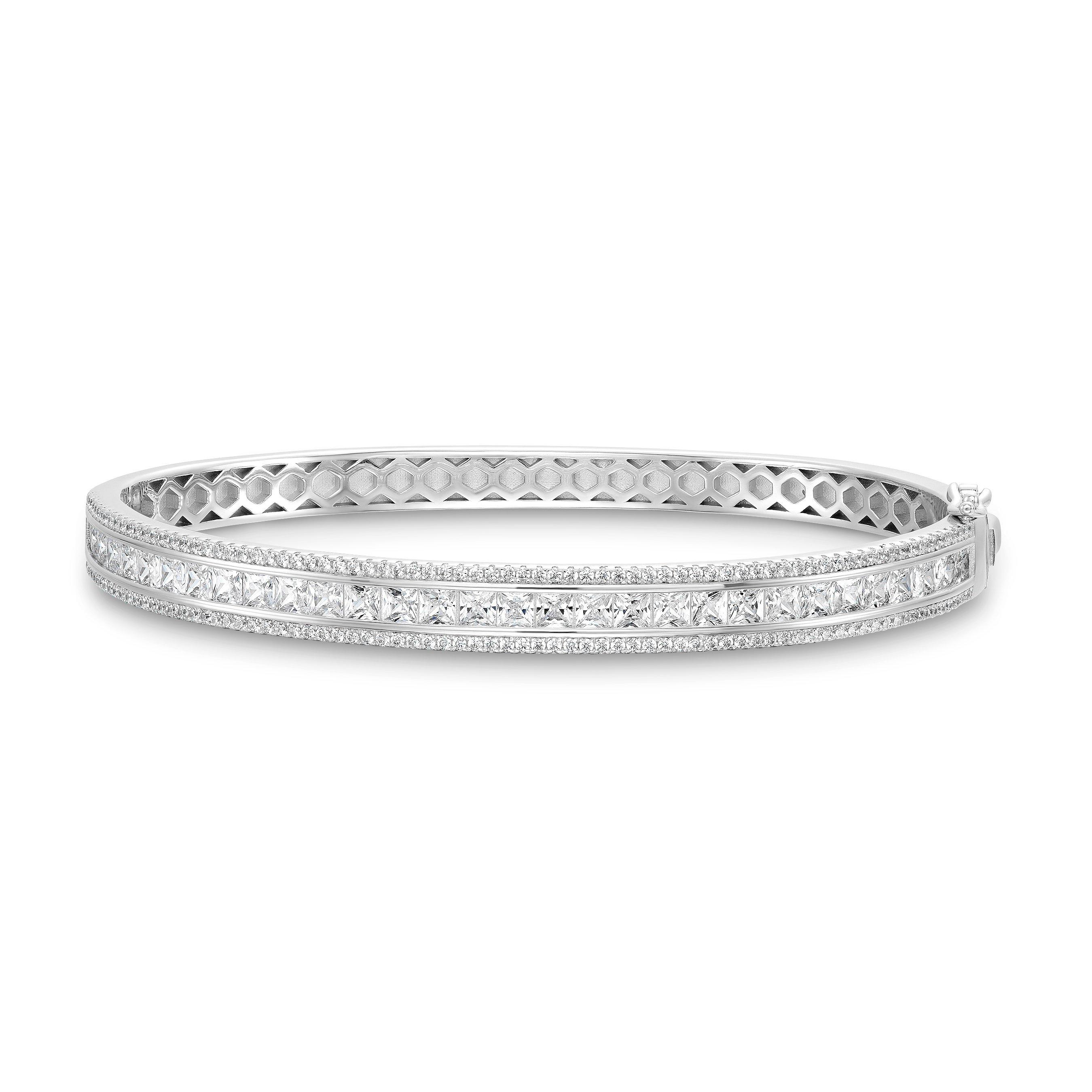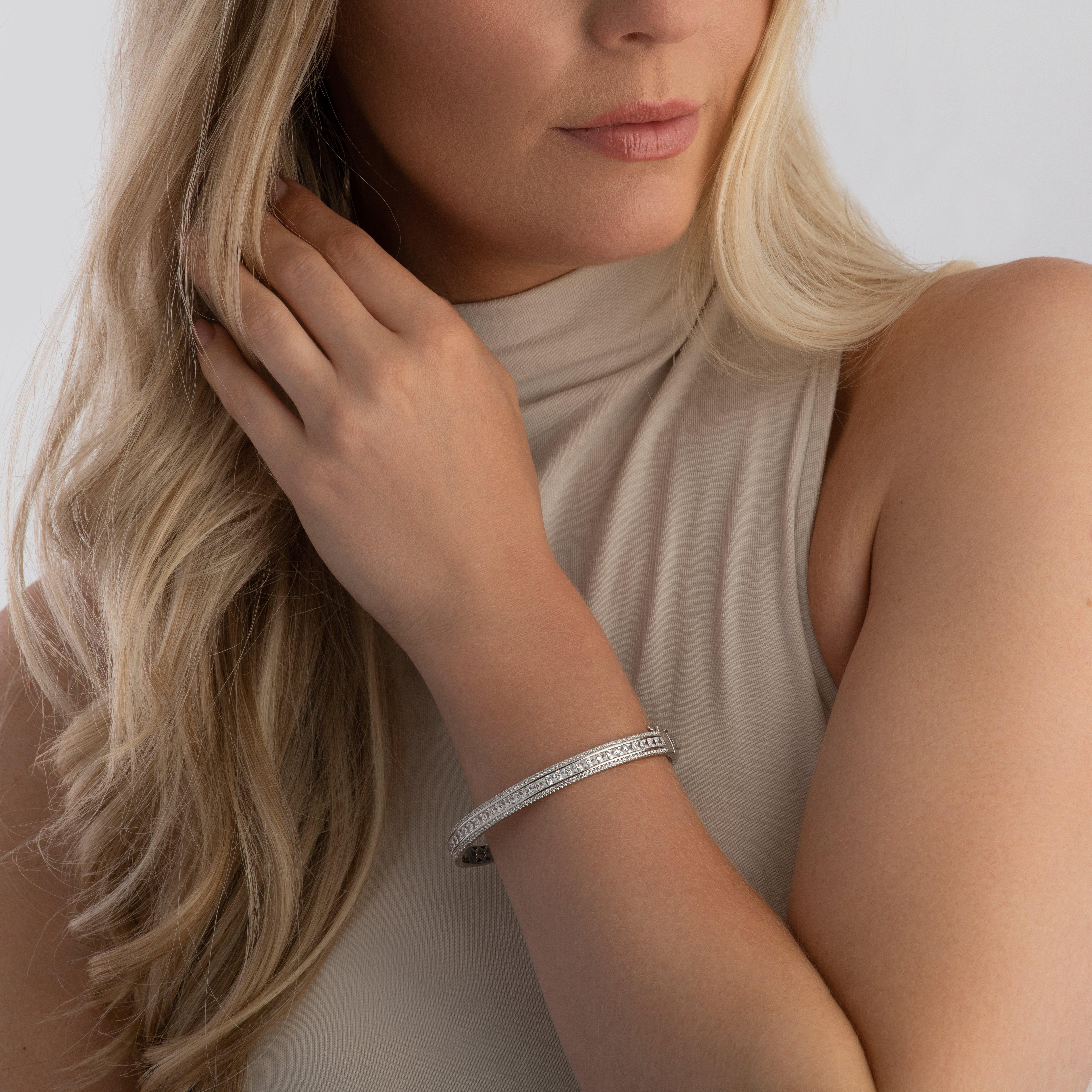 Dazzle and sparkle and steal the spotlight with this silver cubic zirconia triple row bangle. This gorgeous design is made in silver and features a polished bangle that's filled with three rows of dazzling cubic zirconia embellishments. Style yours with more sparkling accessories for show stopping style. Bangle Diameter 7.5cm.