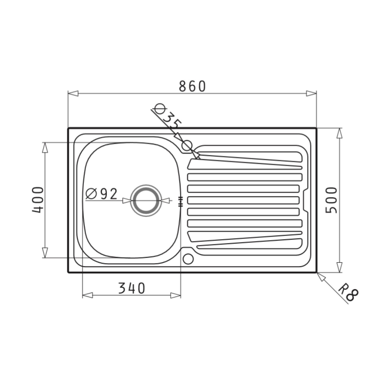 . All about me Timeless design meets everyday practicality.This . stainless steel inset sink. combines modern style with lasting durability making it a perfect fit for any contemporary kitchen. Its . reversible design. gives you the flexibility to position the drainer on either the left or right side ensuring it adapts effortlessly to your space. Crafted from . premium-quality stainless steel. this sink is built to withstand daily use while maintaining its sleek polished appearance. The . smooth easy-clean surface. resists marks and stains making upkeep quick and effortless. Complete with a . chrome basket strainer waste. for added convenience and functionality this sink offers a perfect balance of style and performance. Plus with a . lifetime warranty. you can enjoy total peace of mind knowing your sink is designed to last a lifetime.Need to know . Sink Dimensions W860mm x D400mm x H150mm . Installation . Inset Bowls . 1 Steel gauge / thickness . 0.5mm Material . Stainless Steel Waste kit . Included Fitting kit . Included Warranty . 25 years . .