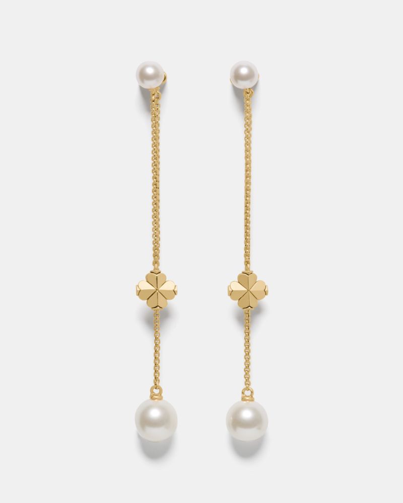 How to make our classic Spade Flower collection-a spin on our iconic logo-even chicer? Easy: pair it with pearls. Kate Spade Women's Spade Flower Pearl Chain Linear Earrings in White Gold