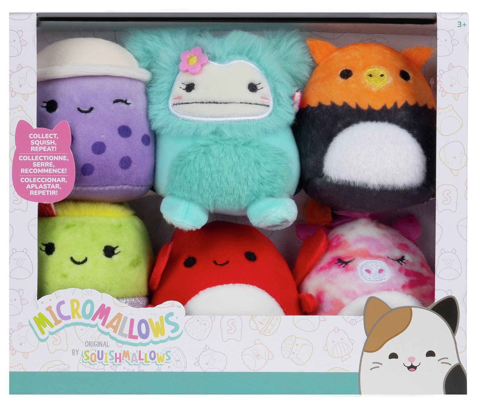 Micromallows are tiny but mighty! This Micromallows plush 6-Pack includes Squishmallows favourites Henley Alicorn, Carlos Crab, Myrna Griffin, Poplina Boba, Anjara Breakfast Burrito and Joelle Bigfoot. Style and display your new micro besties with Accessory Sets or Environmental Sets! Only by Original Squishmallows. Join the Squad! Micromallows are tiny but mighty 2.5 micro plush by Original Squishmallows. Compatible with Micromallows fashion and play accessories! If it doesn't say only by Original Squishmallows or feature our official seal, it's not the real thing. Look for other Micromallows extensions, including Accessory Sets, E...