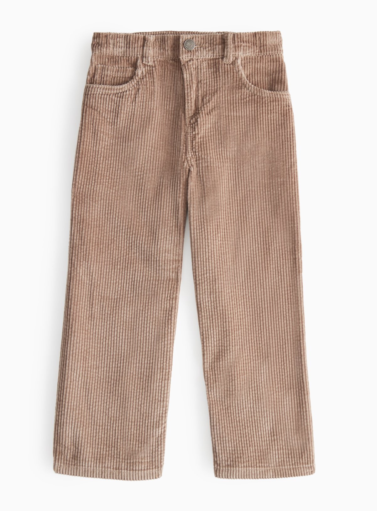 Introduce this pair of stone trousers to their autumn wardrobe. Made in a versatile and timeless corduroy fabric, they come in a stylish wide leg. Finished with a zip and button fastening, belt loops and pockets. Corduroy fabric Wide leg Cotton blend Keep away from fire